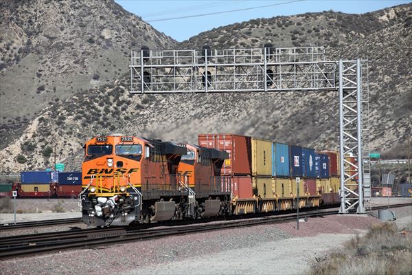 ユニオンパシフィック鉄道は、1967年に開通した以前のサザンパシフィック鉄道パームデールカットオフで、パスを通る1つの線路を所有しています。BNSF鉄道は2つの線路を所有し、2008年の夏に3番目の主要線路を運行し始めました。