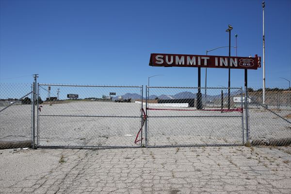 レストランの営業時間中、現在の州間高速道路15号線では、元の赤いネオン「SUMMIT INN」の標識が点滅し、運転手に手招きをしました。駐車場でアンティークの車がありました。