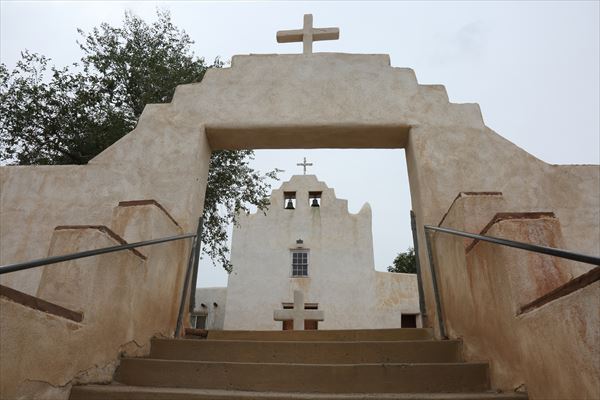 ルート66(I-40)を高速道路で進むと、丘の中腹にあるプエブロの地色の建物の上にそびえる白塗りのサンホセ教会(セントジョセフ教会)をビューポイントから見る事が出来ます。