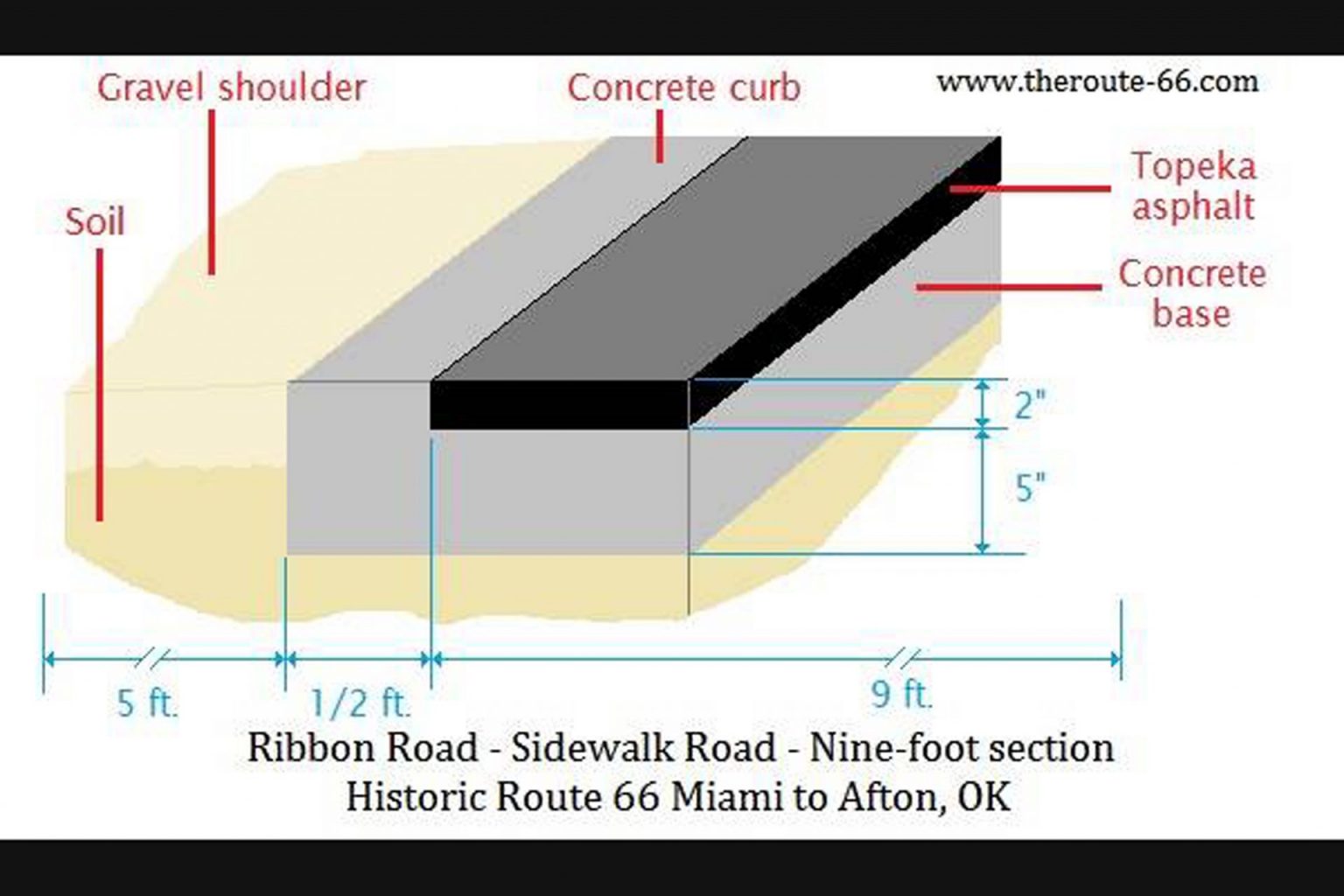 オクラホマ州のマイアマーの町から南にナルシサの町を通りオクラホマ州のアフトン間での間には何箇所か、リボンロード、サイドウォークハイウエーと呼ばれるアスファルトで出来たでリボンのようなデザインの一車線の道です。