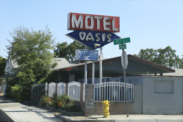 まだ開いている古いオアシスモーテルですが、モーテルの看板には、1950年代の「ターバンのキャラクターの看板」が欠けています。1960年代、人種が深刻な問題であった時代には、有名なテレビシリーズ、ガンスモークの俳優の元妻であるバージニア・アーネスさんが経営していました。