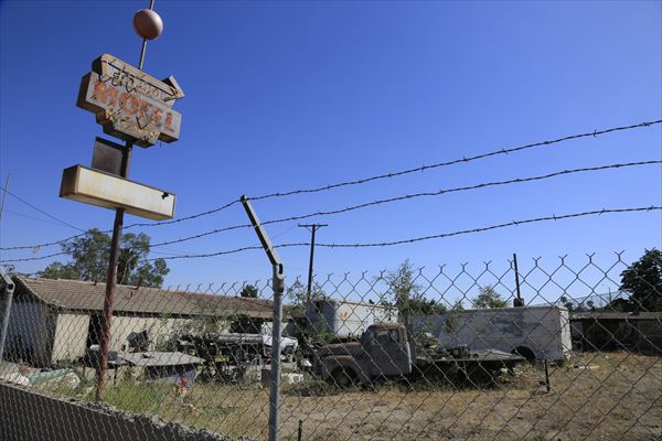町の北への旅を始めて、カホンブルバードにある2つ古いなルート66モーテルの看板を見てください。場所は荒廃していますが、非常に古くてさびたモーテルの看板とボールがあります。